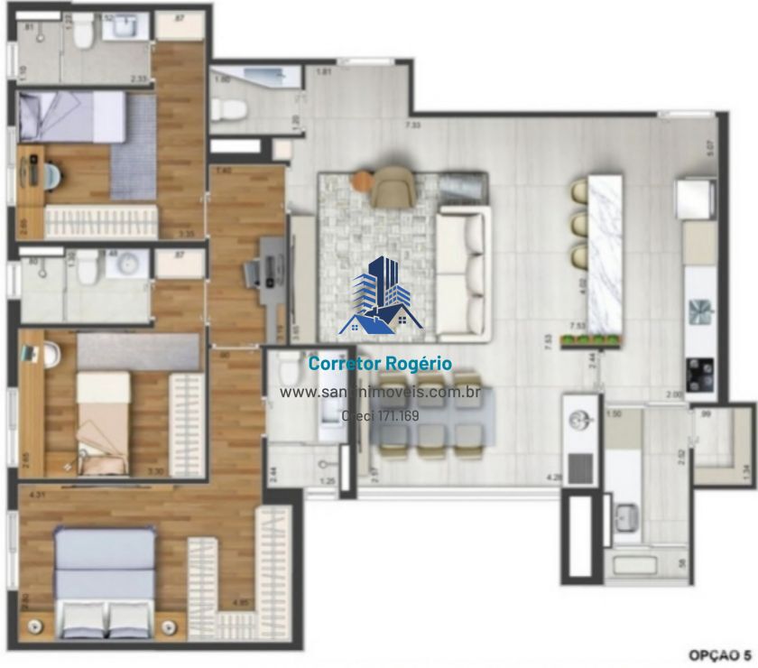 3 Dormitórios, sendo 3 Suítes4 Banheiros3 VagasGaragem Coberta1 Cozinha1 Lavabo1 Área de serviço