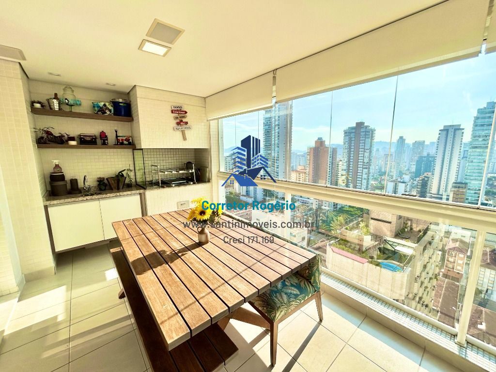 "Belíssimo Apartamento de Alto Padrão em Santos - SP! "** Descrição do Imóvel:Este magnífico apartamento está pronto para oferecer o conforto e luxo que você merece! Com 03 dormitórios, sendo todos suítes com armários planejados, uma sala ampla para 03 ambientes, uma varanda gourmet espaçosa e envidraçada, além de banheiro social, lavabo e área de serviço. O acabamento é de altíssimo padrão, e você terá 02 vagas amplas para estacionamento.** Lazer e Condomínio:Desfrute de uma infraestrutura completa, com tudo o que você precisa para viver momentos inesquecíveis! O condomínio oferece brinquedoteca, churrasqueira, espaço gourmet, piscinas, playground, salão de festas, sala fitness e muito mais!** Localização Privilegiada:Situado na melhor e mais valorizada região do Embaré, este apartamento está a apenas duas quadras da praia! Em uma rua tranquila e residencial, você estará próximo a todo tipo de comércio, escolas renomadas e pontos turísticos, como a Basílica Menor do Embaré.** Valor e Disponibilidade:Valor e disponibilidade sujeitos a alterações sem aviso prévio. Aceitamos financiamento, FGTS e propostas! Agende sua visita e envie sua proposta agora mesmo pelo WhatsApp: (11) 99190-0896.** Segurança e Credibilidade:Contamos com CRECI: 171.169, garantindo segurança e credibilidade em todas as transações.**Não perca a oportunidade de viver no conforto e sofisticação que este apartamento oferece! #ApartamentoDeLuxo #SantosSP #VivaComConforto